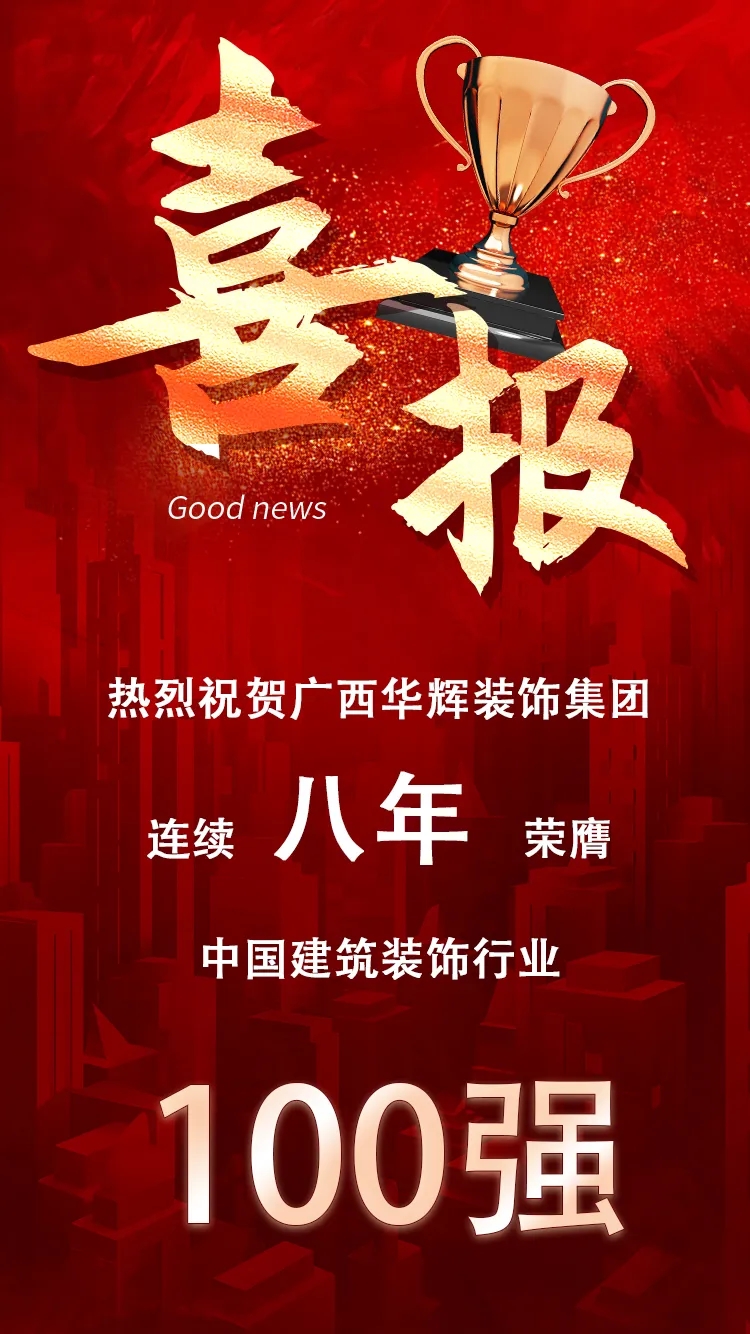 2024年12月10日,“波瀾壯闊四十載 筑夢揚帆新時代”中國建筑裝飾協(xié)會成立40周年大會在北京隆重召開。會上,2023年度中國建筑裝飾協(xié)會行業(yè)綜合數(shù)據(jù)統(tǒng)計報告發(fā)布,廣西華輝裝飾集團有限公司連續(xù)八年榮膺“中國建筑裝飾行業(yè)100強”,位列77名。