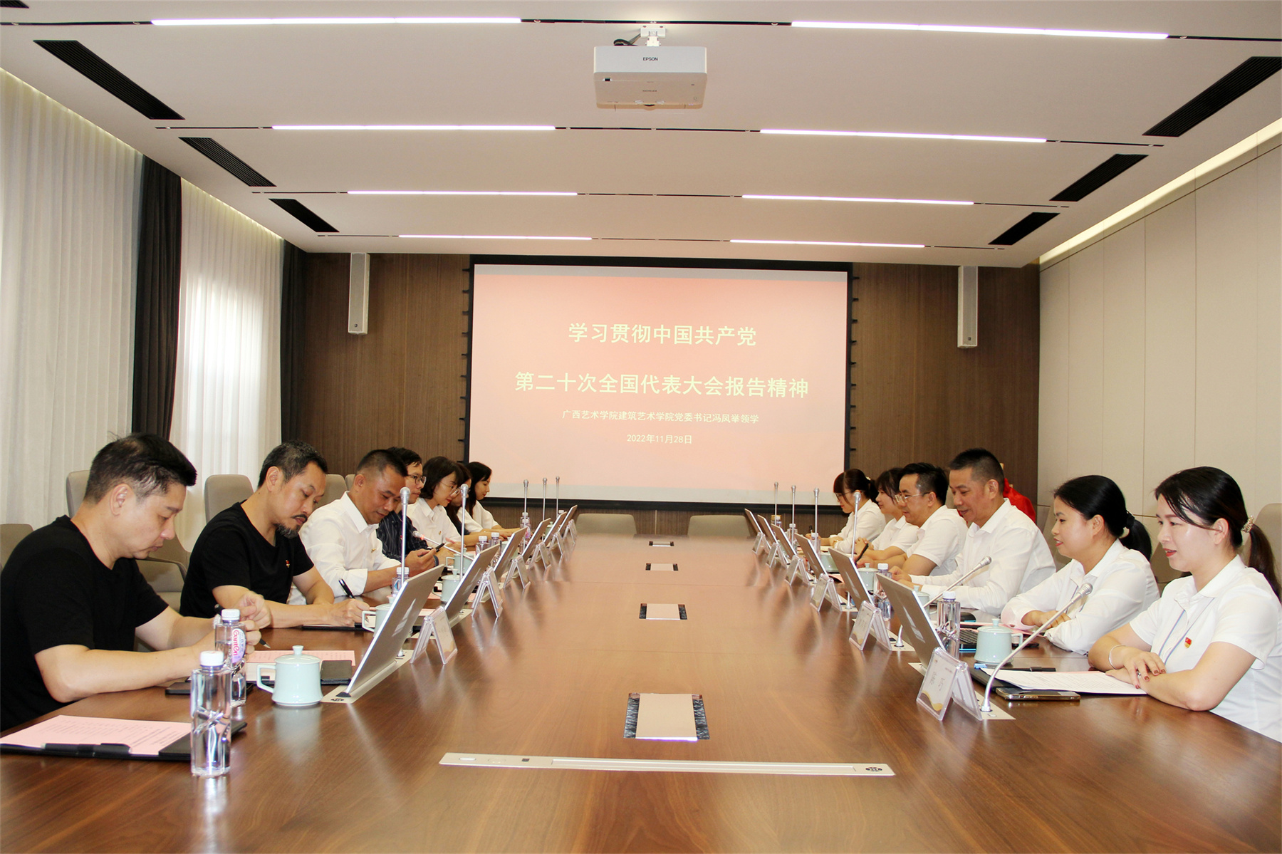 廣西藝術(shù)學(xué)院建筑藝術(shù)學(xué)院黨委書記馮鳳舉領(lǐng)學(xué)了二十大精神學(xué)習(xí)。與會(huì)全體黨員均表示,將切實(shí)把思想和行動(dòng)統(tǒng)一到深入學(xué)習(xí)貫徹黨的二十大精神上來(lái),把堅(jiān)定擁護(hù)‘兩個(gè)確立’、堅(jiān)決做到‘兩個(gè)維護(hù)’落實(shí)到日常工作,立足本職崗位,實(shí)干擔(dān)當(dāng)。