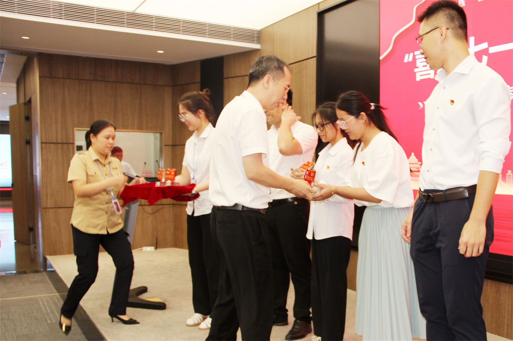 2023年6月27日,華輝黨支部開展“喜迎七一”主題黨日活動。黨員們共同觀看黨史教育片,唱紅歌《沒有共產(chǎn)黨就沒有新中國》,授予新入職黨員“共產(chǎn)黨員崗位牌”,并結(jié)合工作實際和個人體會,暢談如何立足崗位發(fā)揮黨員的先鋒模范作用。黨員們紛紛表示:要深入學(xué)習(xí)貫徹黨的二十大精神,立足本職,創(chuàng)造一流業(yè)績,在自己的工作崗位上切實發(fā)揮先鋒模范作用。