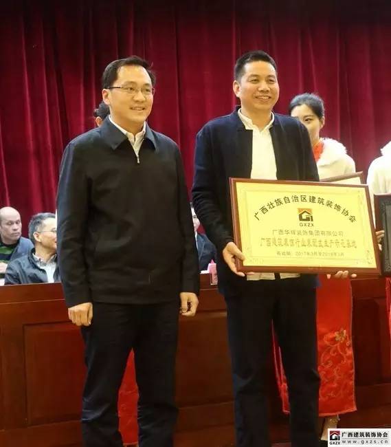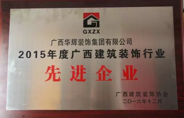 上圖為華輝集團(tuán)獲得的“廣西建筑裝飾行業(yè)先進(jìn)企業(yè)”的牌匾