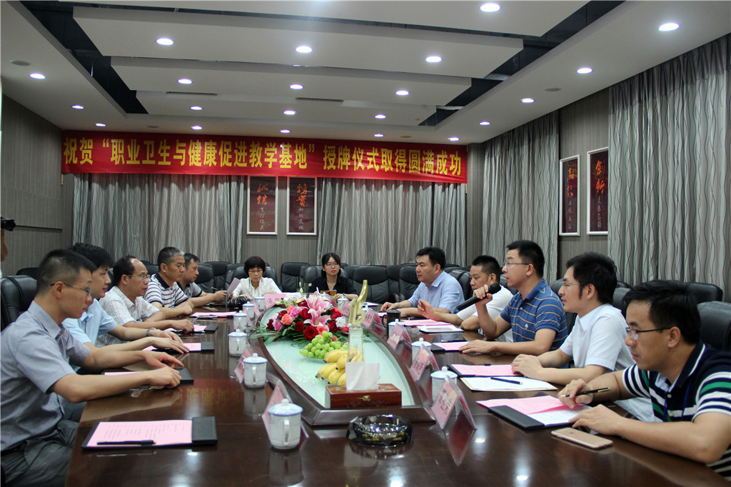 6月28日,授牌儀式在華輝集團成功舉辦。廣西醫(yī)科大學公共衛(wèi)生學院院長楊曉波教授、教研科科長唐咸艷、職業(yè)衛(wèi)生與職業(yè)醫(yī)學教研室主任韋霄教授;南寧市安監(jiān)局職業(yè)健康監(jiān)管科科長何偉雄、南寧市經開區(qū)安監(jiān)局局長李振文、副局長王彥強;華輝集團董事長楊景忠、大景公司常務副總經理覃祖榮等領導參加了此次授牌儀式。