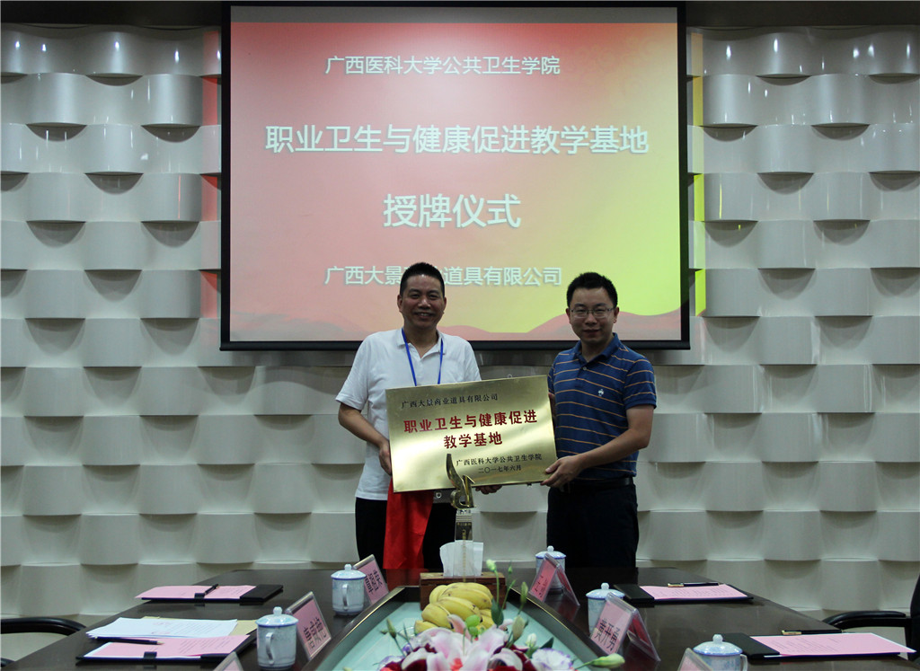 在南寧市安監(jiān)局積極推動下,首個“職業(yè)衛(wèi)生與健康促進教學基地”,6月28日,在廣西華輝集團旗下公司——廣西大景商業(yè)道具有限公司正式掛牌成立。據悉,這也是廣西首個校企合作職業(yè)衛(wèi)生與健康促進教學基地。該教學基地由廣西醫(yī)科大學公共衛(wèi)生學院與廣西大景商業(yè)道具有限公司合作成立,旨在建立一個公共衛(wèi)生專業(yè)人才培養(yǎng)、實踐和科研的平臺。
