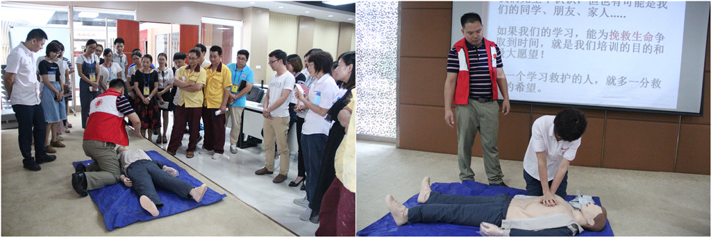 應急救護培訓現(xiàn)場:來自紅十字會的培訓老師用通俗易懂的語言為大家講解了心肺復蘇、人工呼吸等常見應急、意外傷害的救護原理及技術(shù)手段,并結(jié)合實踐操作,讓大家掌握基本急救、自救、呼救的技能知識和關(guān)鍵性的救助實踐操作,提高面對意外事故的應急能力。