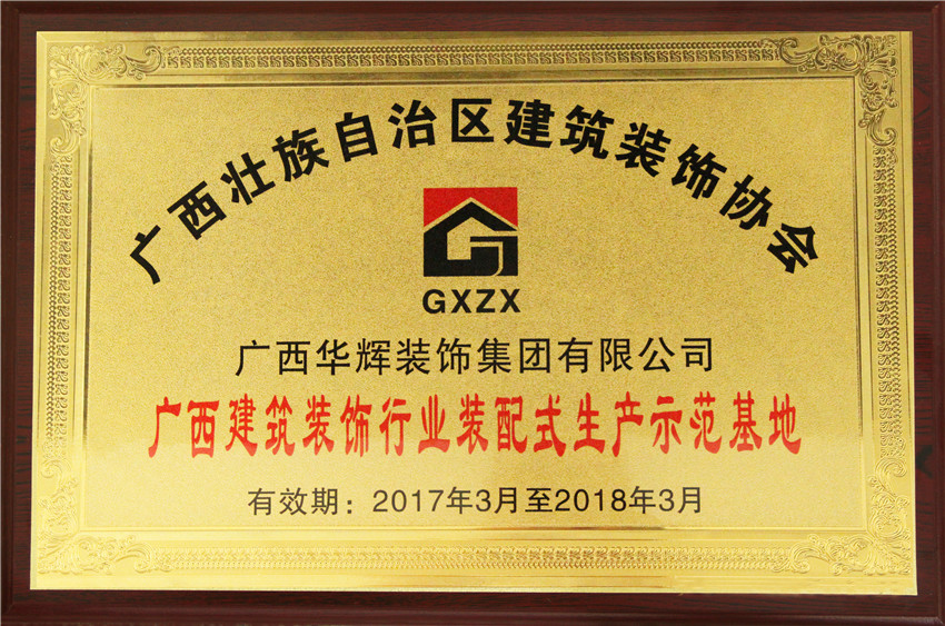 3月,華輝集團(tuán)榮獲“廣西建筑裝飾行業(yè)裝配化生產(chǎn)示范基地”、“廣西建筑裝飾工程優(yōu)質(zhì)獎(jiǎng)”、“廣西建筑裝飾行業(yè)先進(jìn)企業(yè)”等多個(gè)榮譽(yù)稱號(hào)。