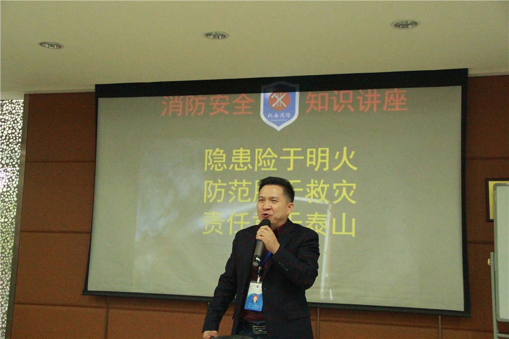 培訓(xùn)中,徐軍主任通過(guò)典型火災(zāi)案例,采用圖片和視頻相結(jié)合,并與參訓(xùn)人員互動(dòng)的方式,講解了消防基礎(chǔ)知識(shí)、防火滅火知識(shí)、火場(chǎng)逃生及滅火器的使用方法等消防安全知識(shí)。通過(guò)徐軍主任的生動(dòng)講解和火災(zāi)圖文資料展示,使大家對(duì)撲滅初期火災(zāi)及火災(zāi)逃生自救的能力有了深刻了解。