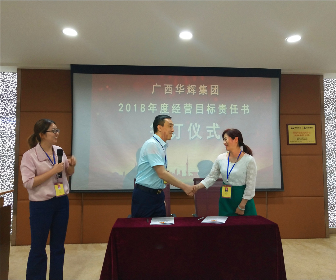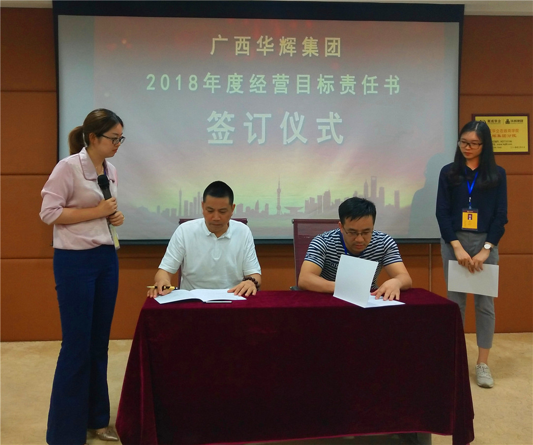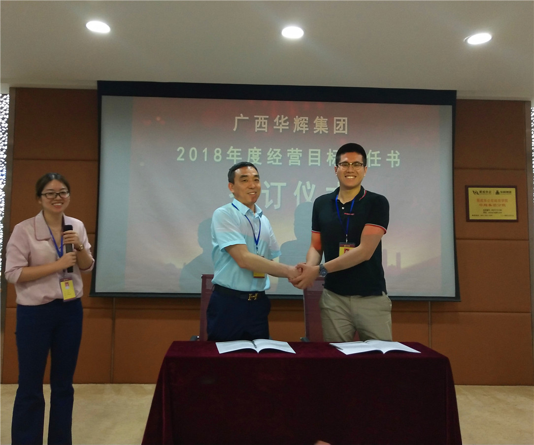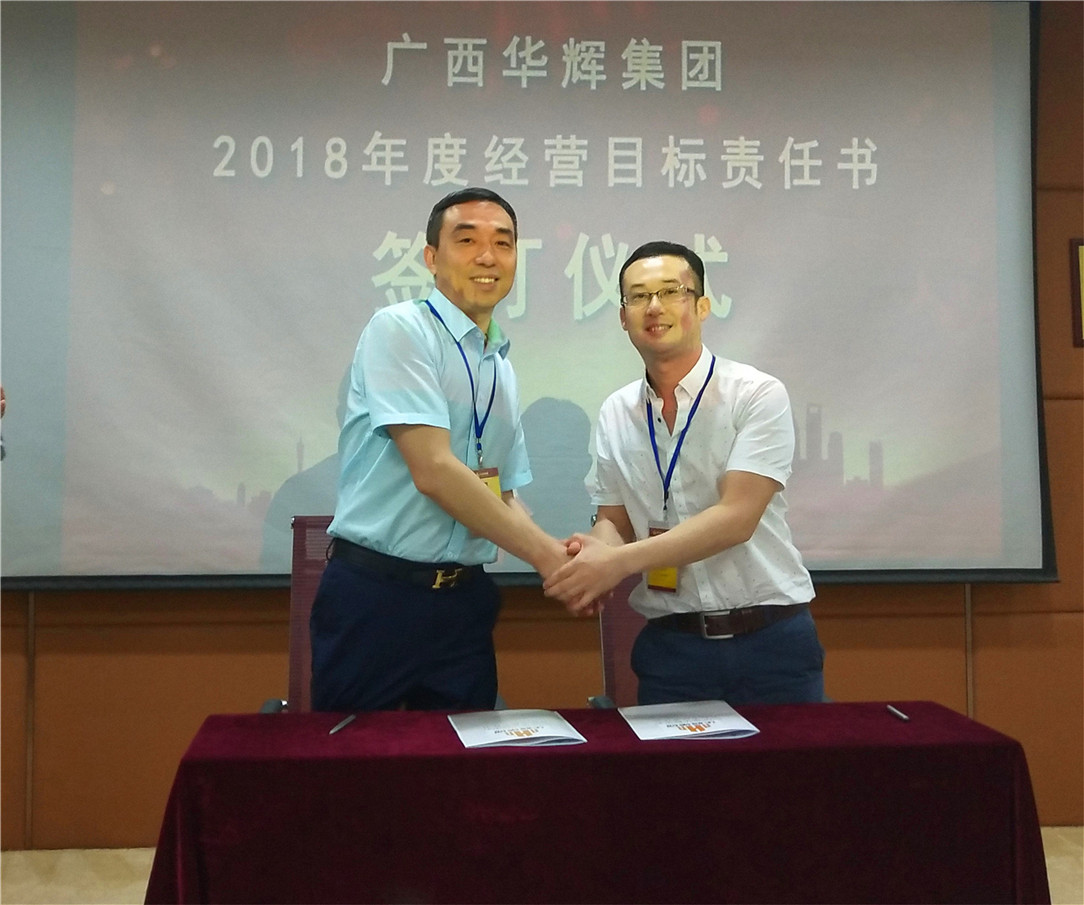 隨后,華輝集團(tuán)2018年度經(jīng)營目標(biāo)責(zé)任書簽訂儀式將總結(jié)會的氛圍推至高潮,責(zé)任書的簽訂讓每個人都切實感受到身上的重?fù)?dān)和責(zé)任。