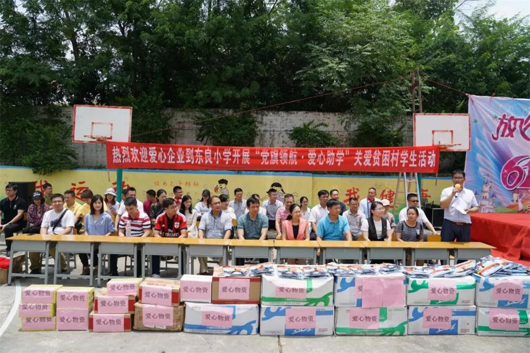 ▲在東良小學(xué)開展“黨旗領(lǐng)航·愛心助學(xué)”關(guān)愛貧困村學(xué)生活動(dòng)