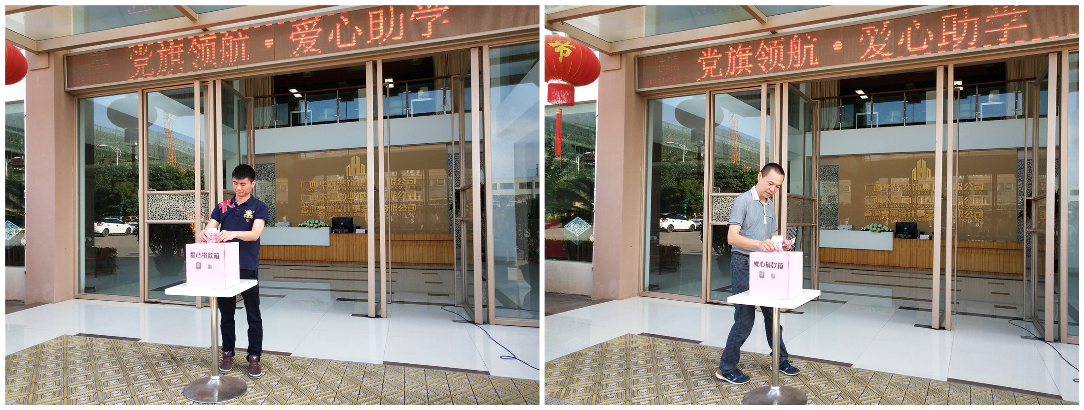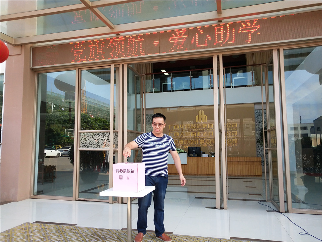 為廣泛募集愛心助學(xué)資金,華輝裝飾集團(tuán)黨支部發(fā)出通知,在集團(tuán)范圍內(nèi)開展向馬山縣貧困村兒童捐款活動(dòng)。此次捐款活動(dòng)得到了集團(tuán)各單位和廣大干部職工的積極響應(yīng),大家迅速行動(dòng),慷慨解囊,用實(shí)際行動(dòng)營造了慈善公益、愛心互助、樂善好施的良好社會(huì)氛圍,為社會(huì)奉獻(xiàn)自己的一份愛心。