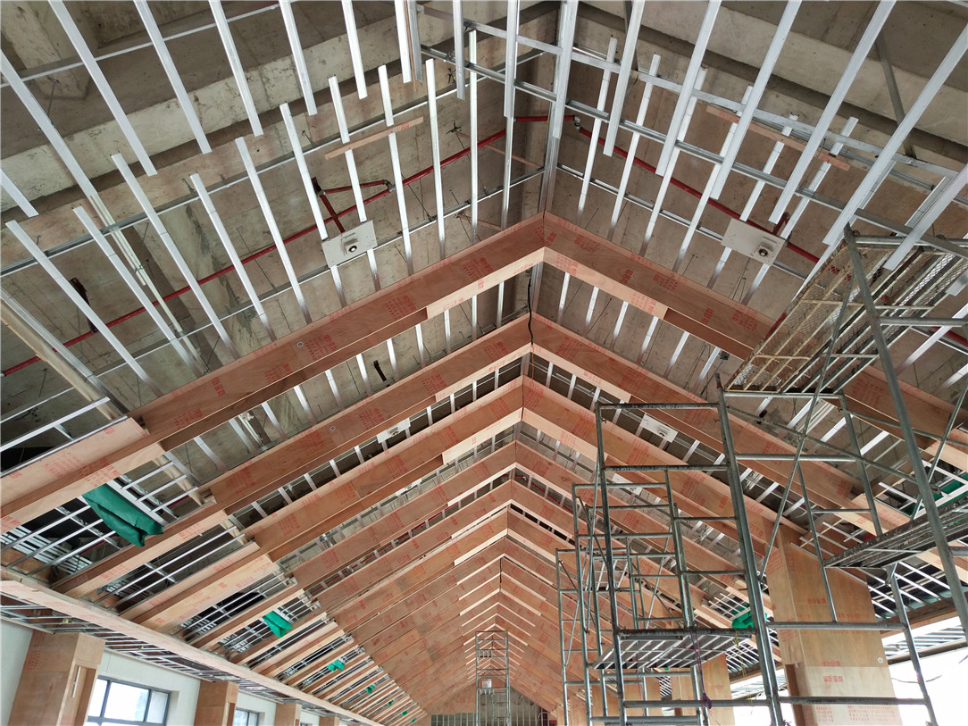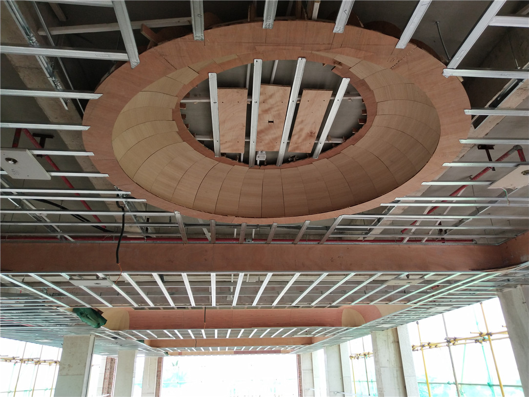 ▲豪華包廂吊燈其中荷載用15厘阻燃板加固