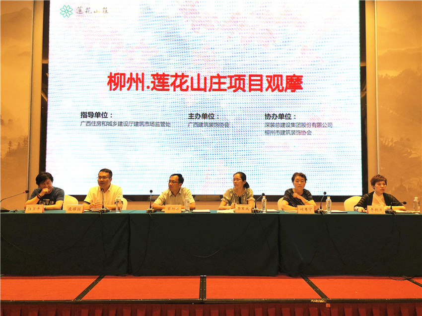 8月17日下午,由廣西住房和城鄉(xiāng)建設(shè)廳建筑市場(chǎng)監(jiān)管處指導(dǎo),廣西建筑裝飾協(xié)會(huì)主辦,深裝總建設(shè)集團(tuán)股份有限公司、柳州市建筑裝飾協(xié)會(huì)共同協(xié)辦的蓮花山莊裝修工程現(xiàn)場(chǎng)觀摩活動(dòng)順利舉辦。