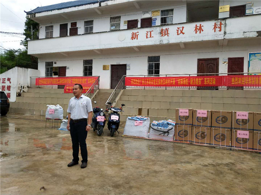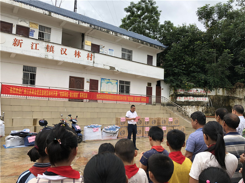 8月31日上午,南寧市邕寧區(qū)新江鎮(zhèn)漢林村洋溢著一片暖意,“黨旗領(lǐng)航·助力扶貧”的愛心捐贈(zèng)活動(dòng)正在這里舉辦。
