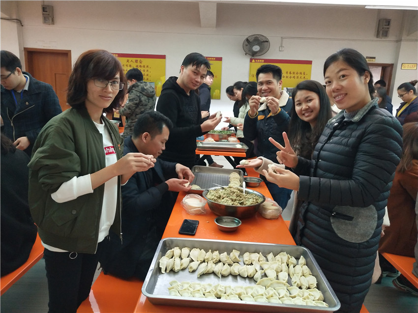 中午,集團飯?zhí)没須g樂溫馨的包餃子現(xiàn)場,大家有說有笑,你追我趕地包餃子、吃餃子、吃湯圓,享受歡聚的幸福!
