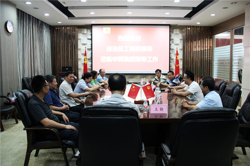 2019年7月2日,自治區(qū)工商聯(lián)吳振秋副主席、許丹部長(zhǎng),廣西江蘇商會(huì)施瑞明執(zhí)行會(huì)長(zhǎng)以及商會(huì)副會(huì)長(zhǎng)、秘書處一行蒞臨華輝集團(tuán)指導(dǎo)工作。
