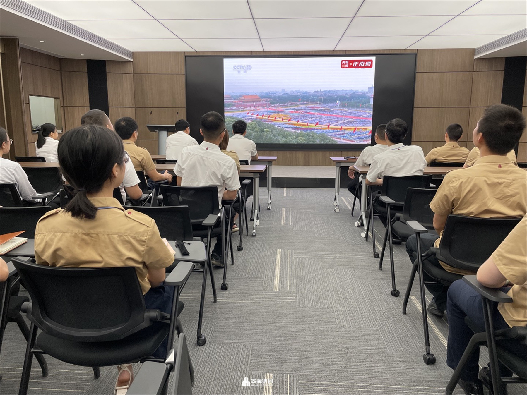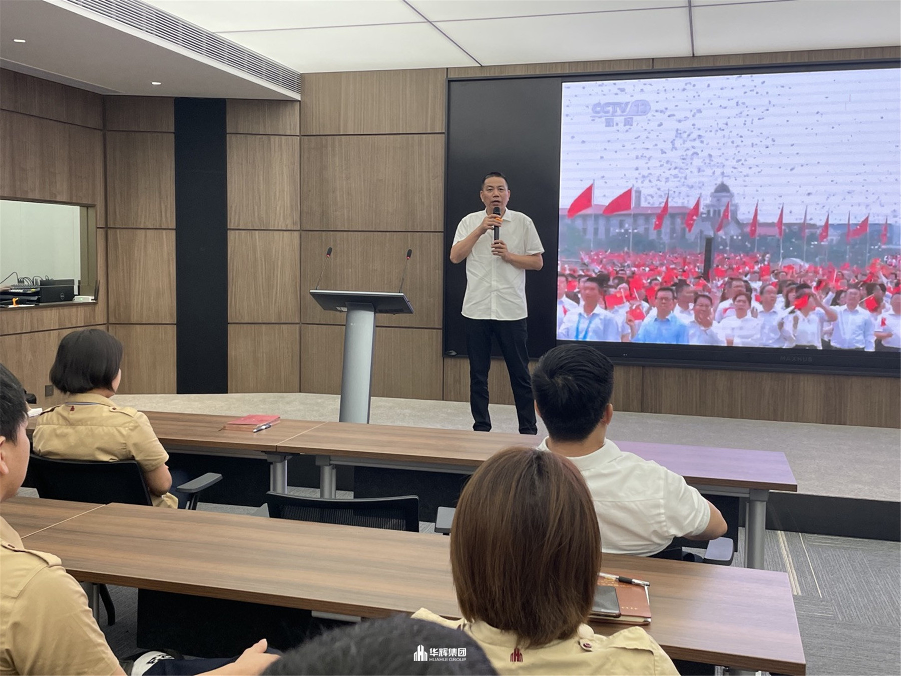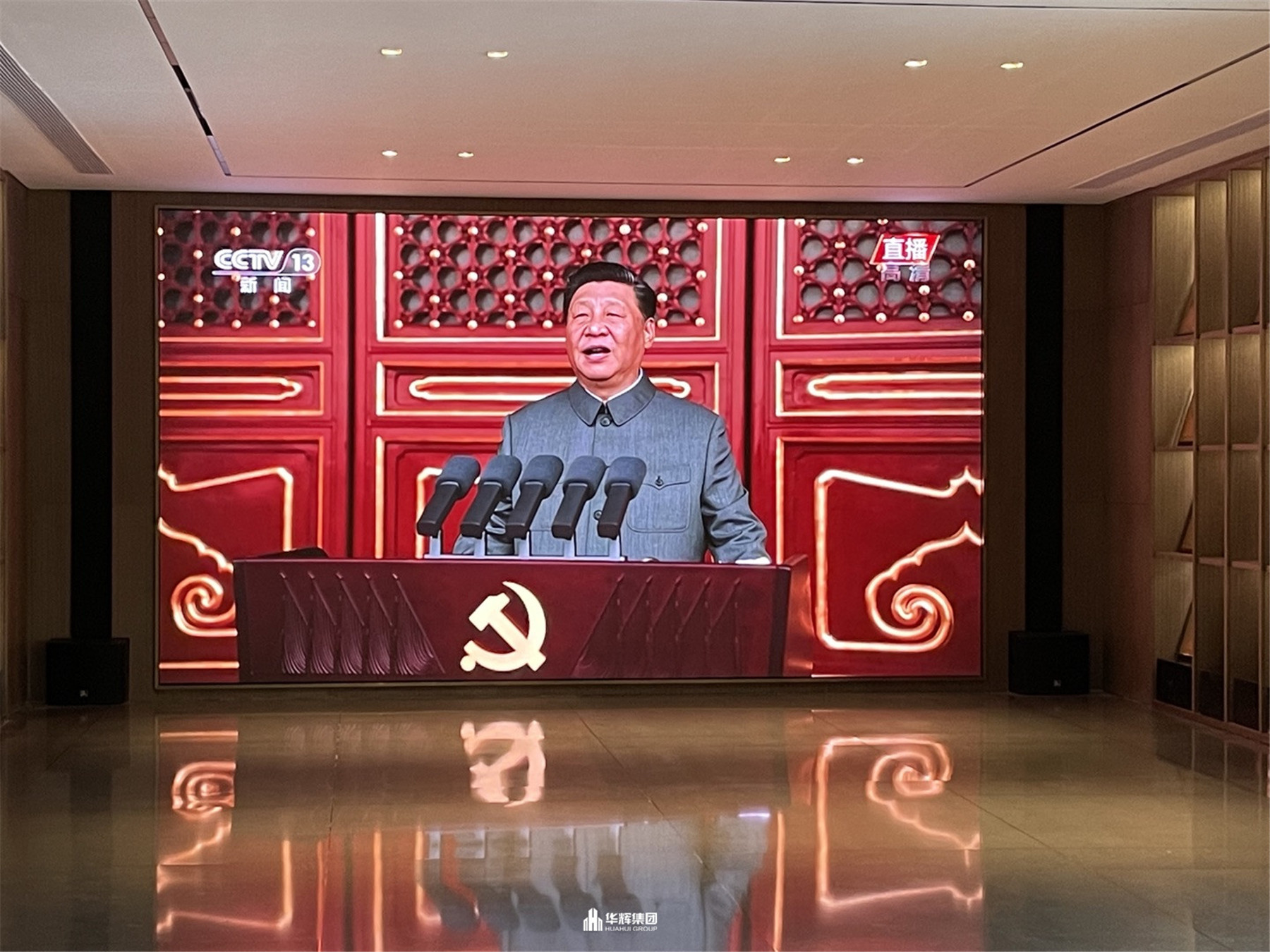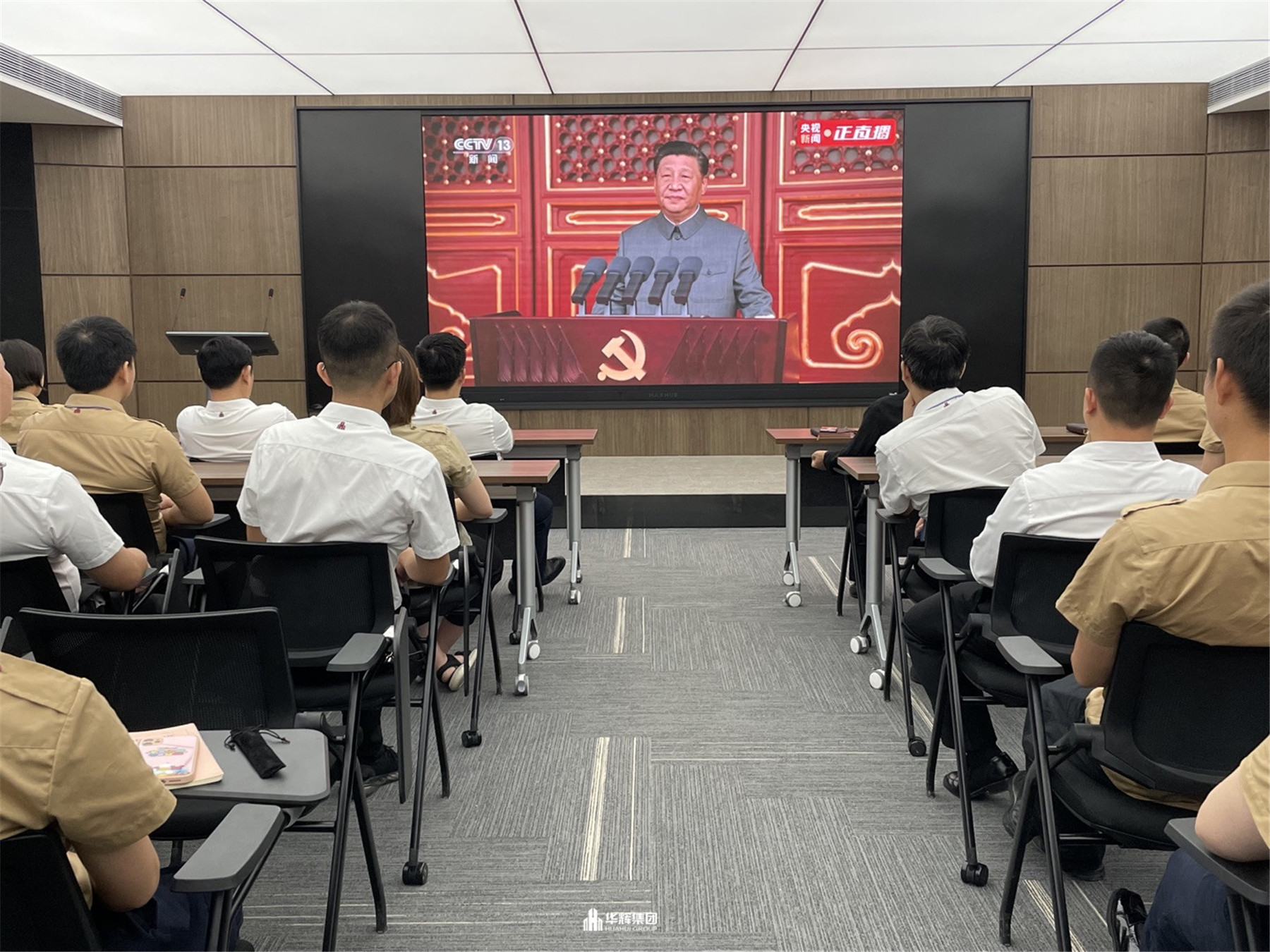 2021年7月1日,慶祝中國共產黨成立一百周年大會在北京天安門隆重舉行。在華輝黨支部的組織下,華輝黨支部黨員、入黨積極分子,集團領導及員工在集團總部共同收看了大會直播,集團各分公司、各項目部、外出人員通過集中觀看、手機觀看等各種方式同時收看了直播。