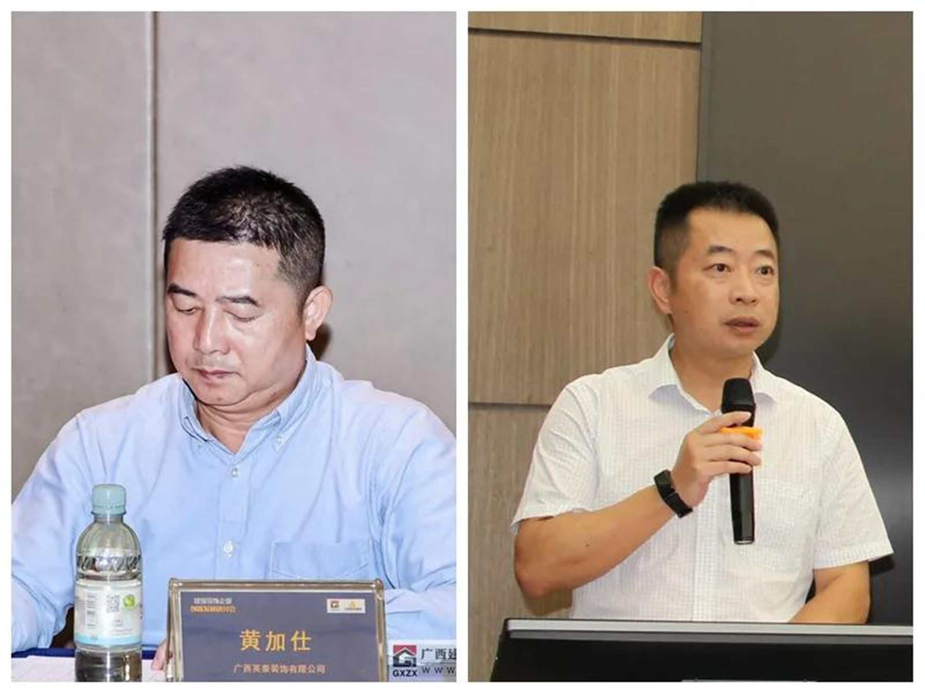▲(左)監(jiān)事長、廣西英泰裝飾有限公司總經理 黃加仕,(右)廣西建筑裝飾協(xié)會副秘書長 譚謙