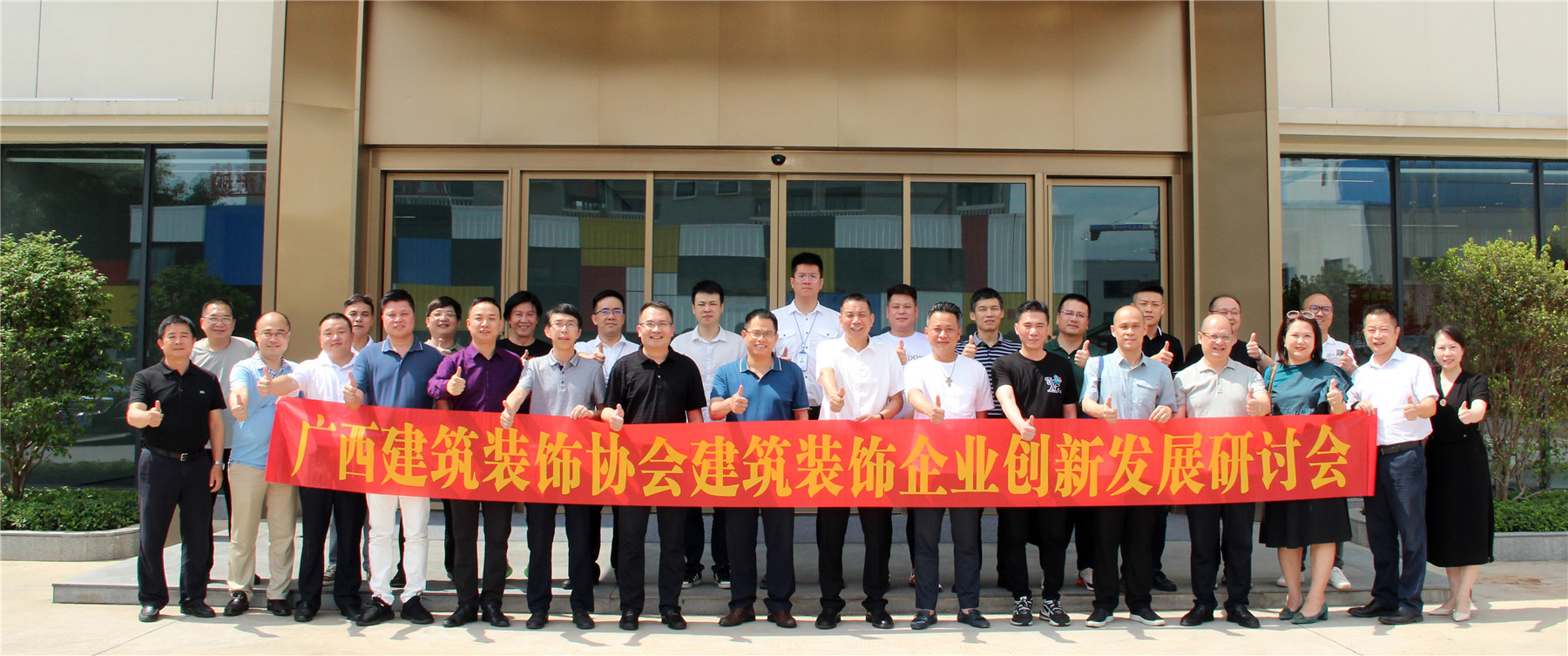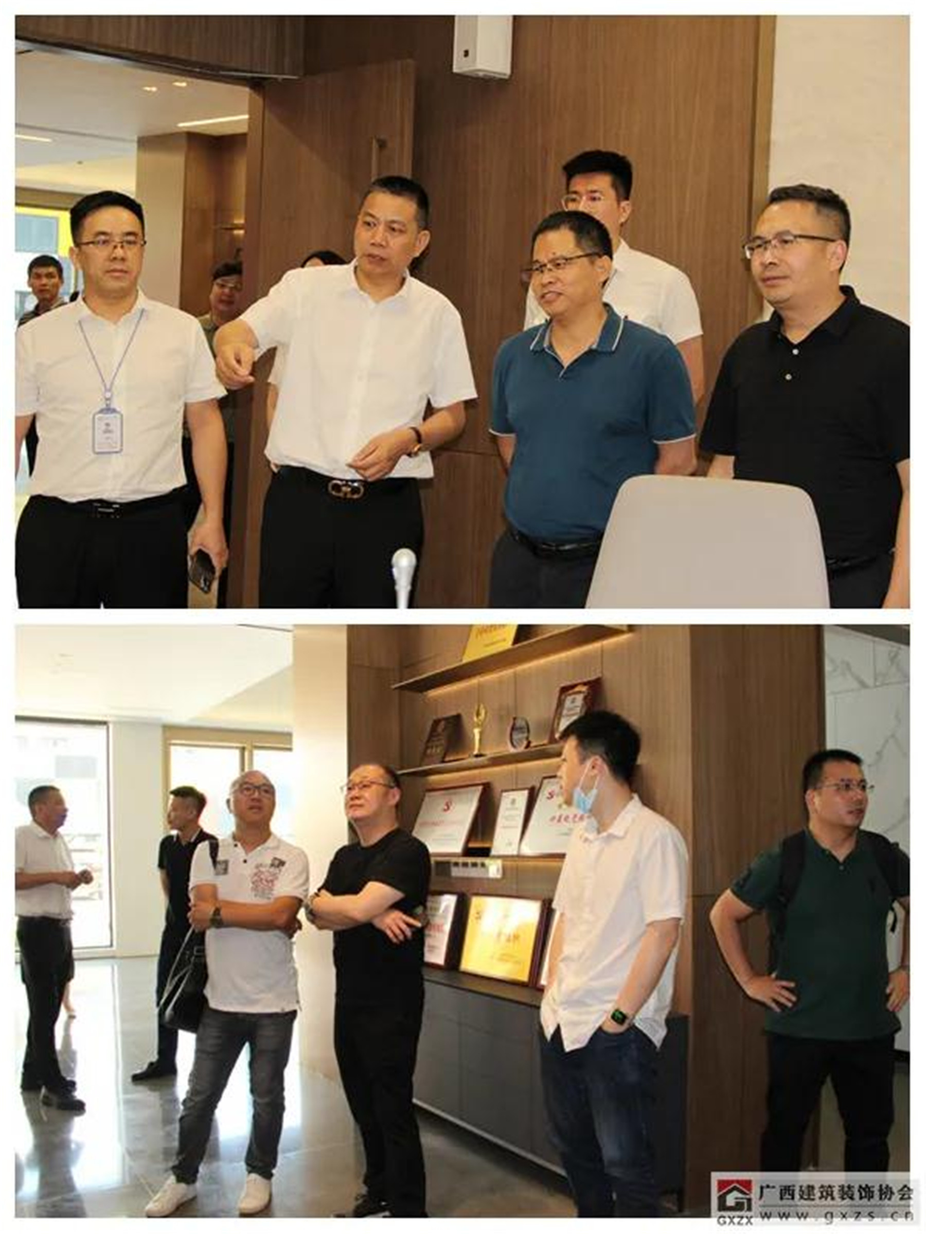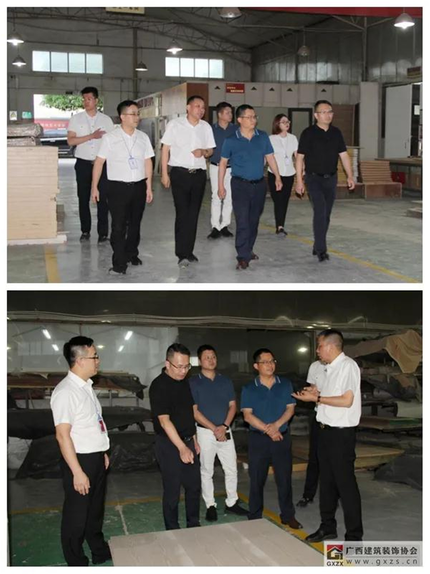會后,參會嘉賓在楊景忠董事長的帶領下,參觀了廣西華輝裝飾集團有限公司新改造升級的辦公場地以及裝配式工廠化生產基地。
