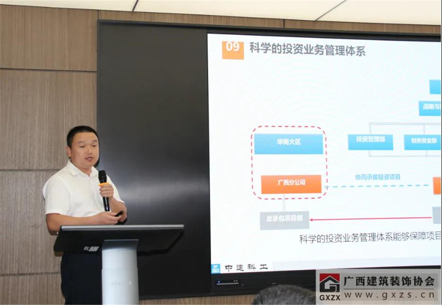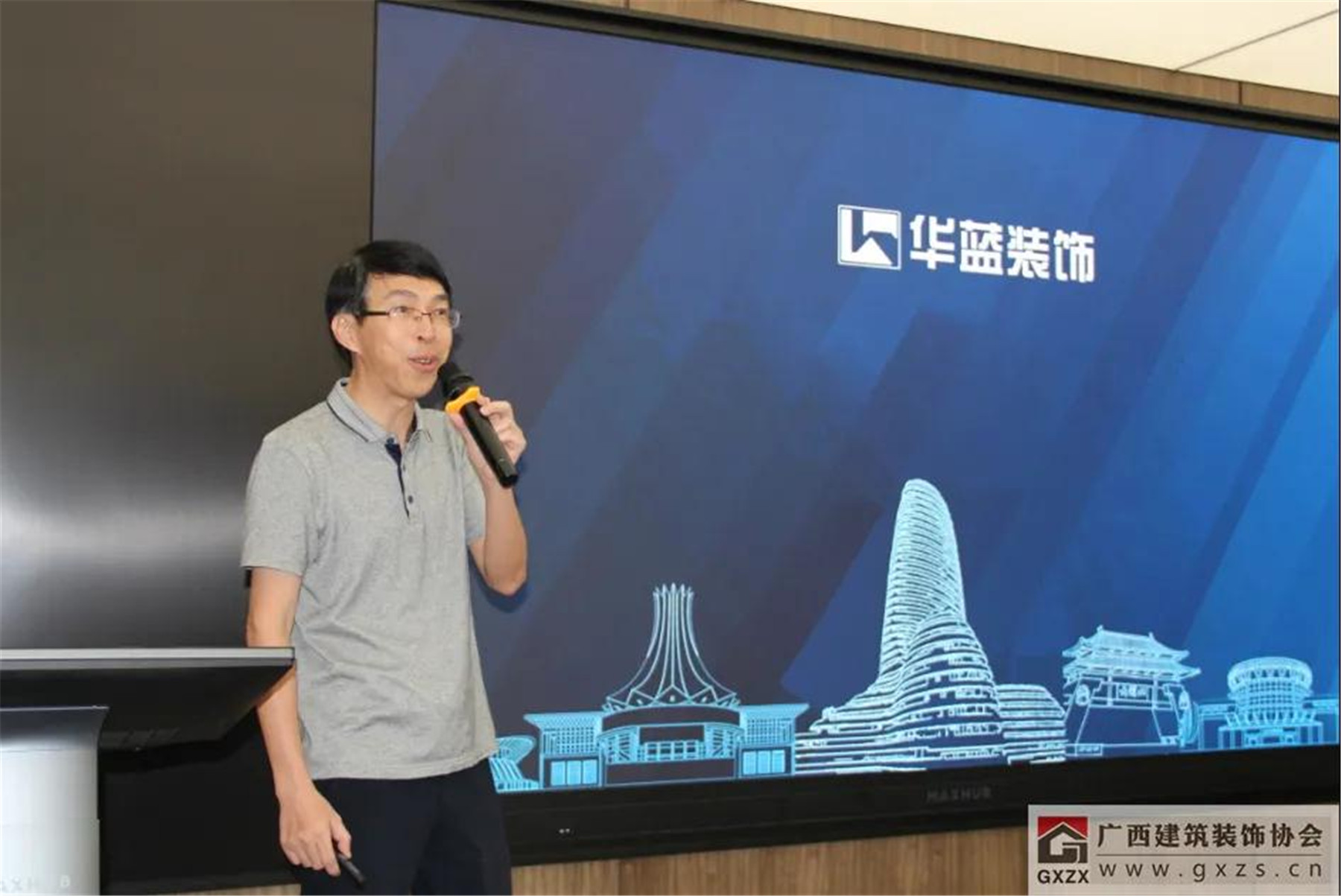 協(xié)會副會長、廣西華藍建筑裝飾工程有限公司董事長朱建宇進行了“以設計引領建筑裝飾企業(yè)創(chuàng)新發(fā)展”的分享。