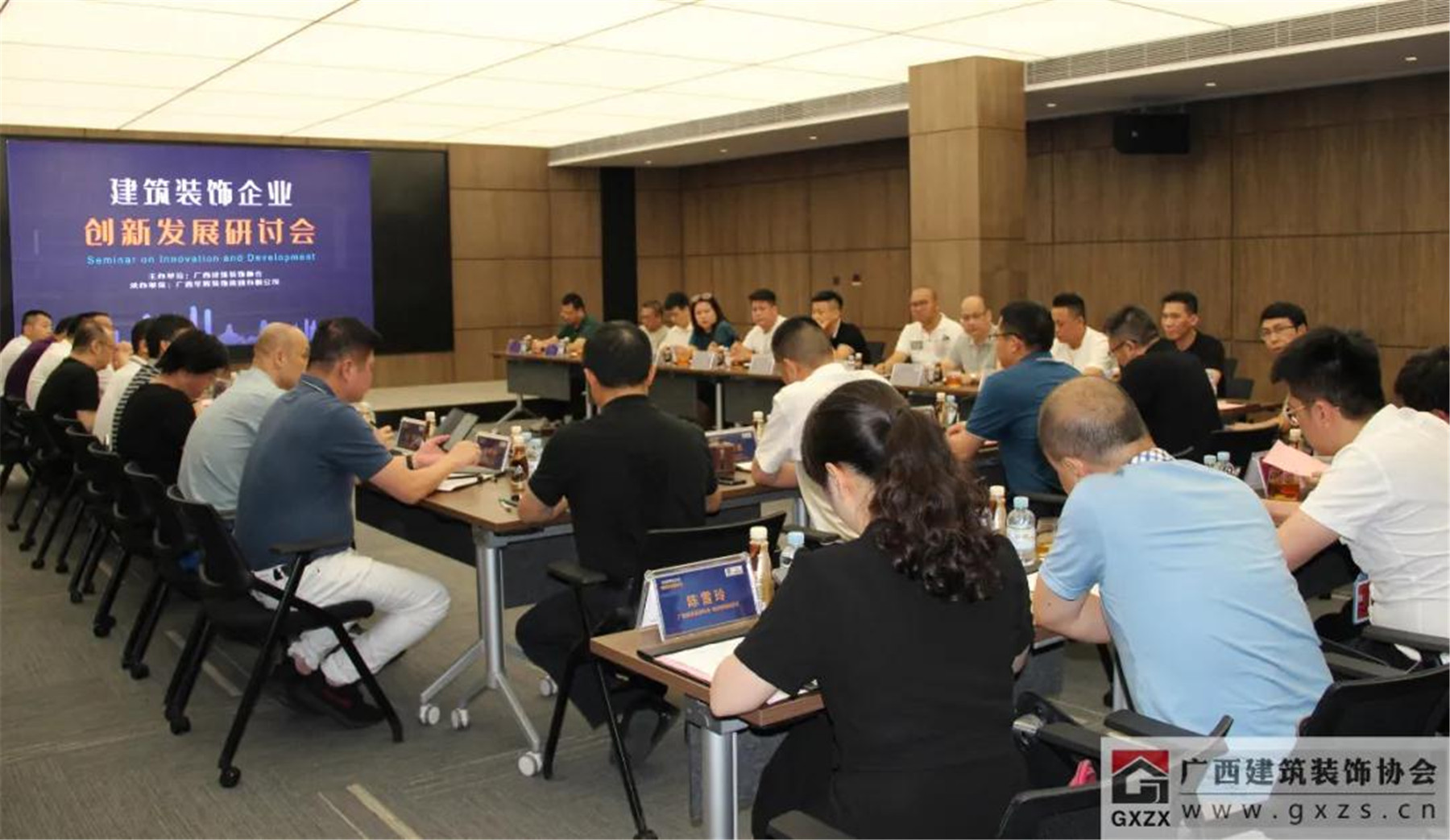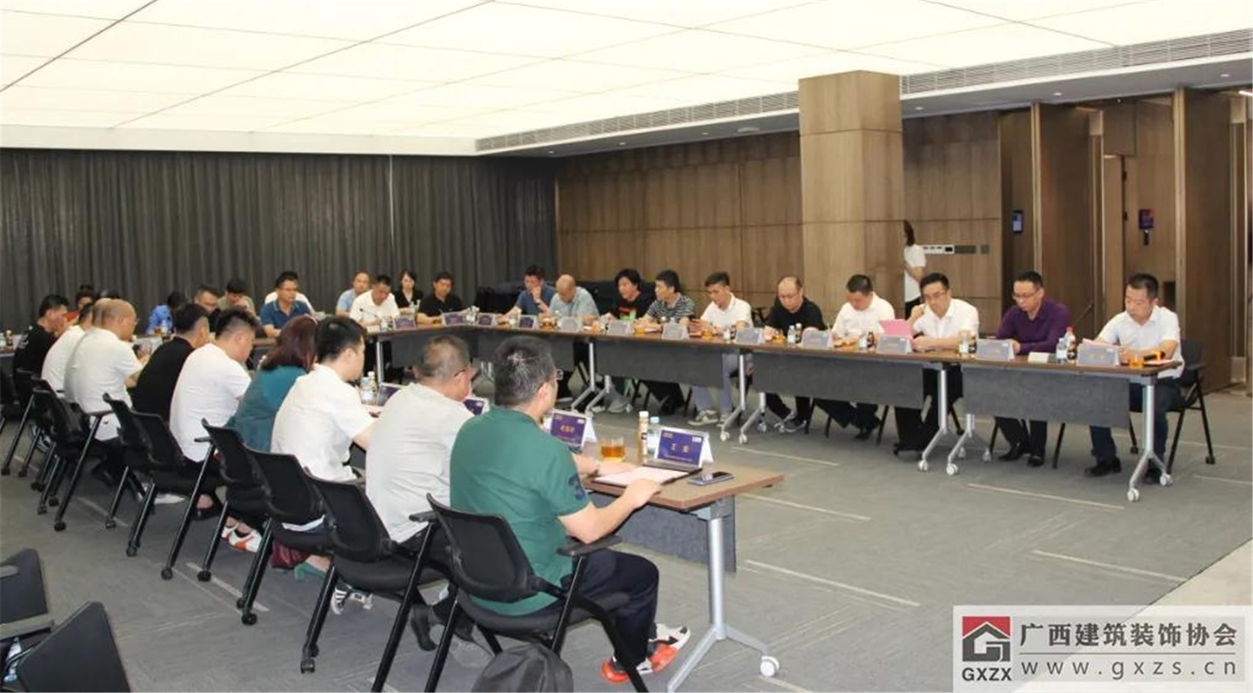 廣西華輝裝飾集團有限公司副總裁覃祖榮、廣西華藍建筑裝飾工程有限公司副總經理盧廬、廣西華輝裝飾集團有限公司董事長助理兼市場總監(jiān)楊彬、廣西華輝裝飾集團有限公司董事長助理楊琳、廣西建筑裝飾協(xié)會辦公室主任黃榆、組織聯(lián)絡部主任陳雪玲等參加了會議。