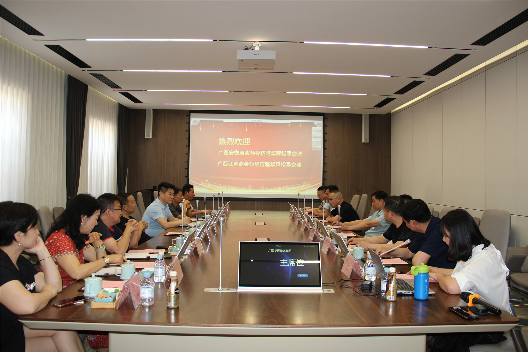 2021年5月9日,廣西安徽商會(huì)會(huì)長李傳德,秘書長吳格飛,執(zhí)行會(huì)長趙勝利、郭中華,副會(huì)長徐兵、鄭華、張清華等領(lǐng)導(dǎo)一行到訪華輝裝飾集團(tuán),與廣西江蘇商會(huì)開展友好交流,廣西江蘇商會(huì)會(huì)長施瑞明,執(zhí)行會(huì)長楊景忠、張賢兵、楊勤偉,常務(wù)副會(huì)長、人民調(diào)解委員會(huì)主任王月霞等領(lǐng)導(dǎo)出席了座談交流會(huì)。