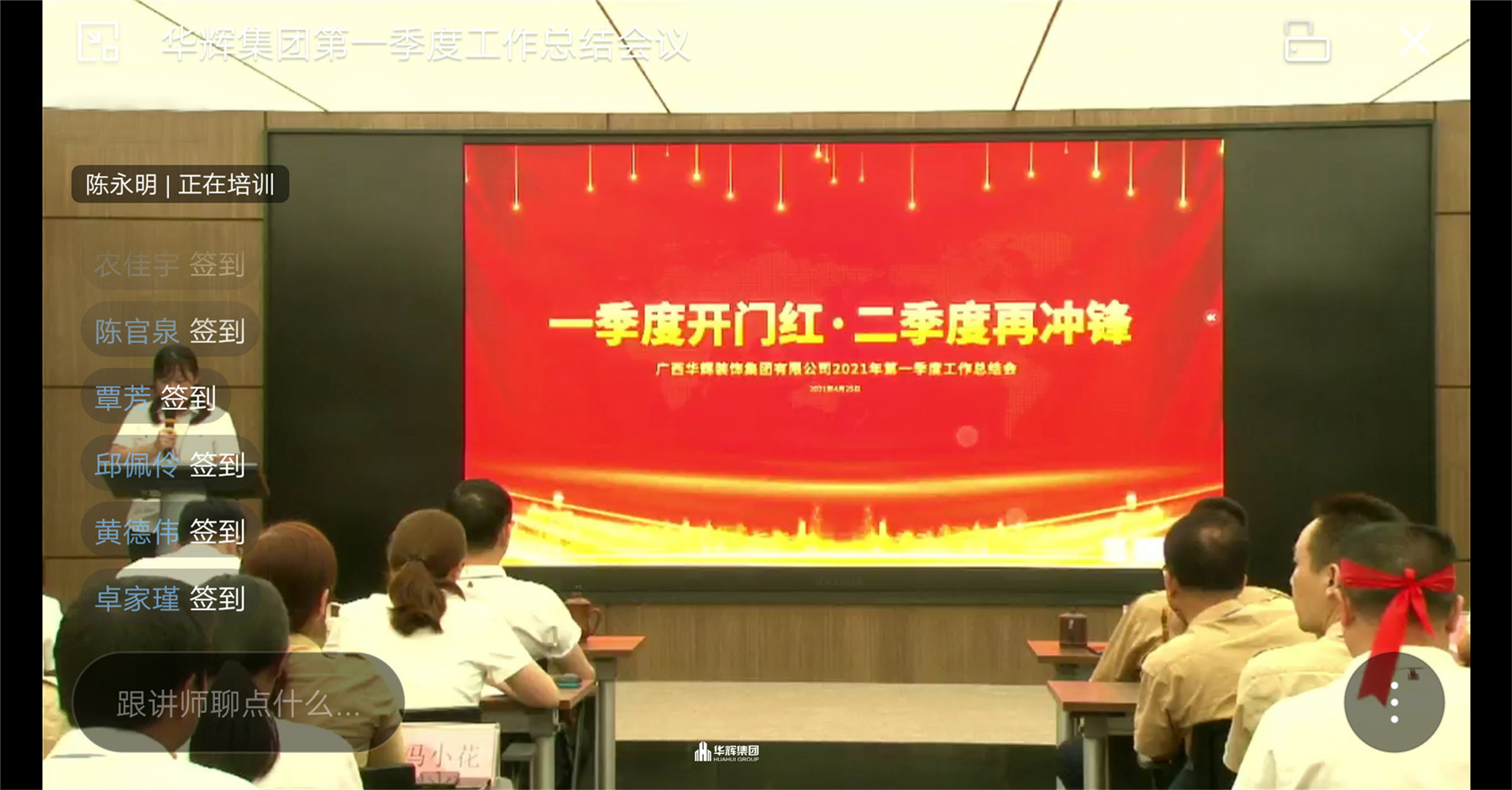 2021年4月25日,華輝集團召開第一季度工作總結會,會議通過線上+線上方式開展,分公司、外地項目部通過直播參與會議。