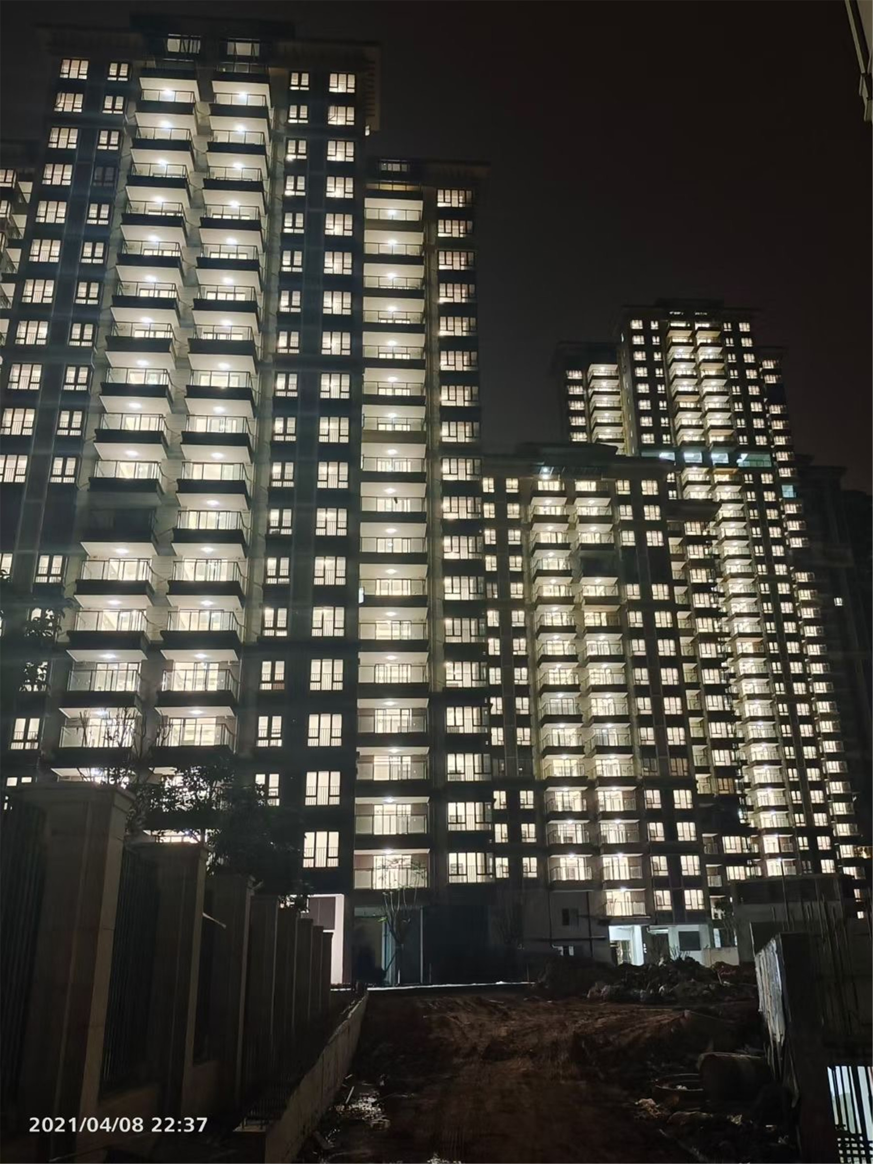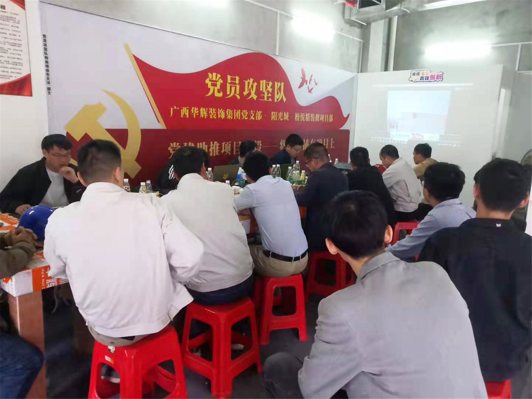 ▲華輝一精裝修項目迎來亮燈儀式, 流光溢彩的燈光點燃了項目全員的奮斗熱情
