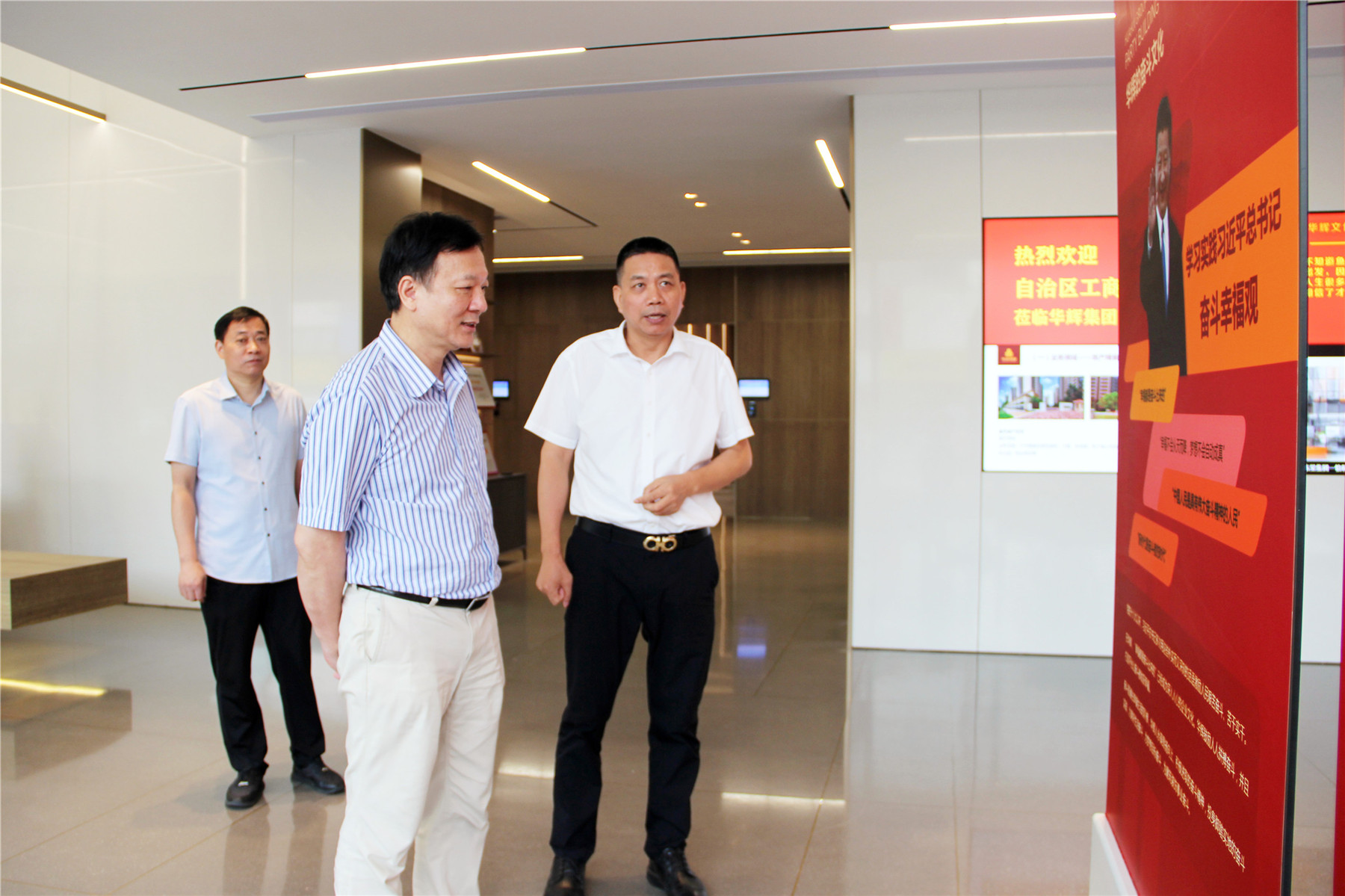 2021年9月7日,自治區(qū)工商聯(lián)黨組成員、副主席、商協(xié)會(huì)黨委書記吳振秋帶隊(duì),蒞臨華輝集團(tuán)調(diào)研指導(dǎo)工作。自治區(qū)工商聯(lián)會(huì)員部副部長廖永快、一級(jí)主任科員李松恒,自治區(qū)工商聯(lián)商協(xié)會(huì)黨委何桂燾,以及廣西江蘇商會(huì)施瑞明會(huì)長等領(lǐng)導(dǎo)陪同調(diào)研。