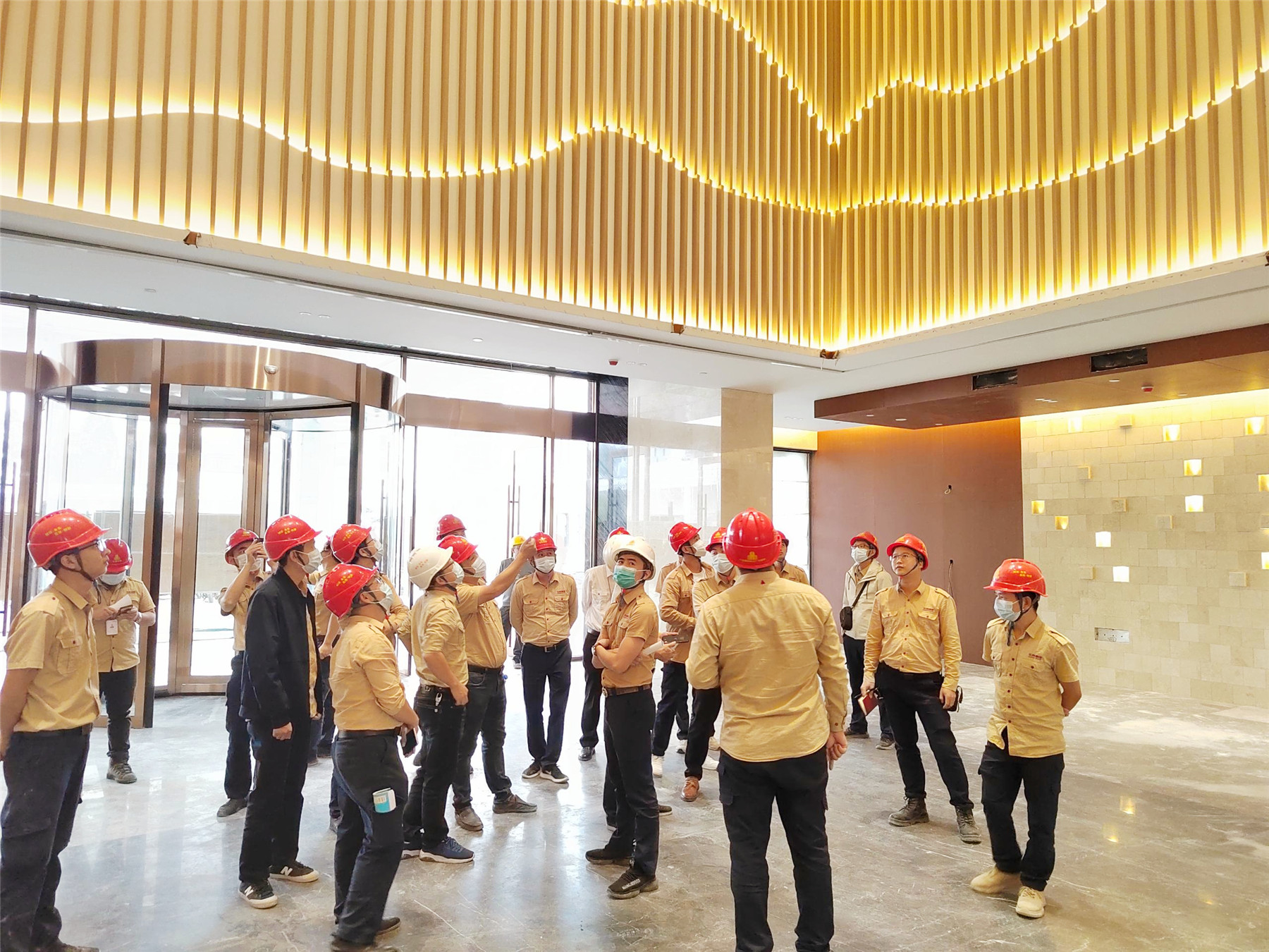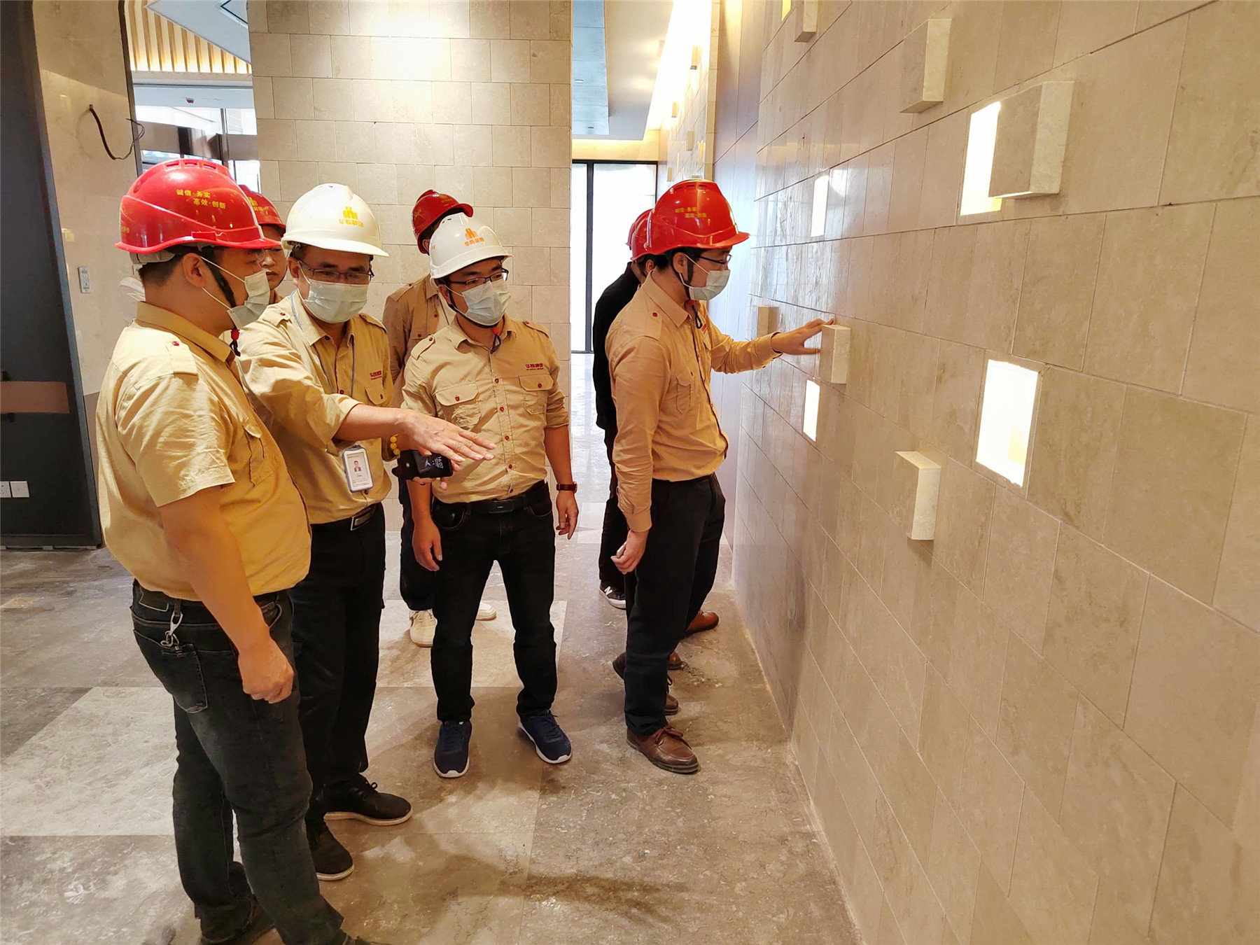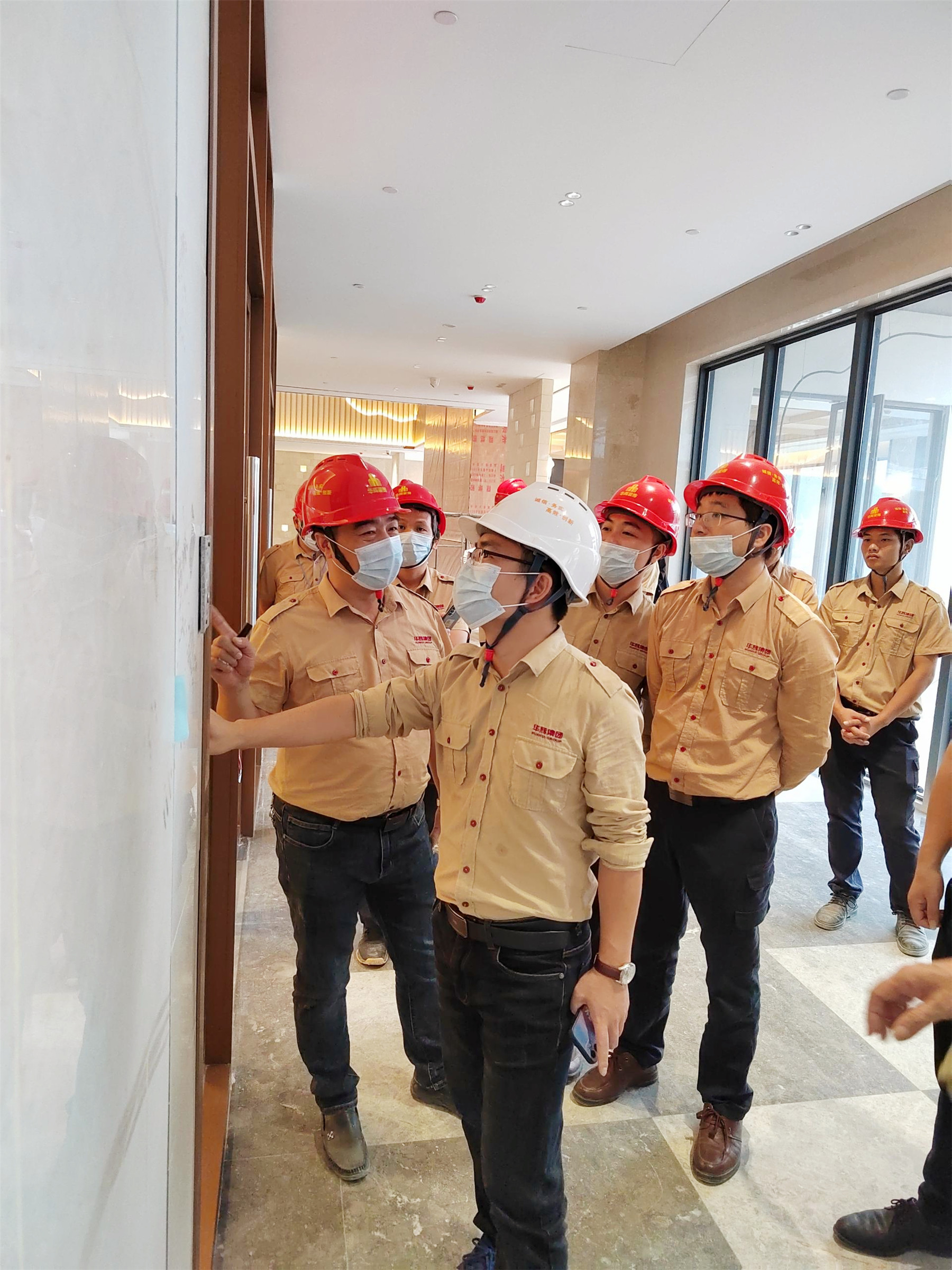 全體與會人員實地觀摩陸川·溫泉九龍山莊裝修工程,項目部相關(guān)人員詳細介紹了施工過程中的重點、難點。本次的觀摩會,聚焦項目管理以及施工工藝工法。本項目從前期項目策劃、材料的層層把控到施工細節(jié)的營造,無不體現(xiàn)華輝人對精工品質(zhì)的追求。