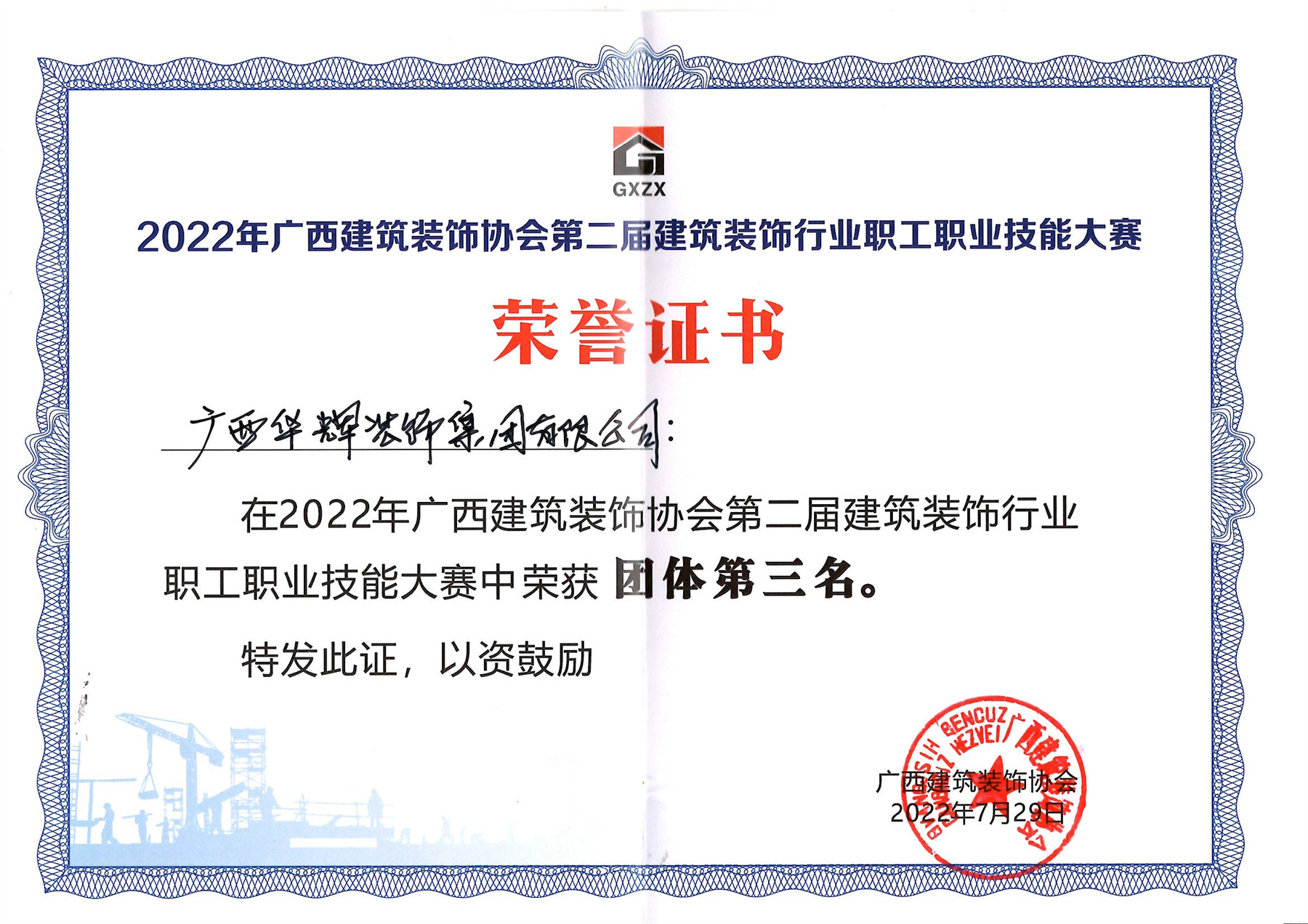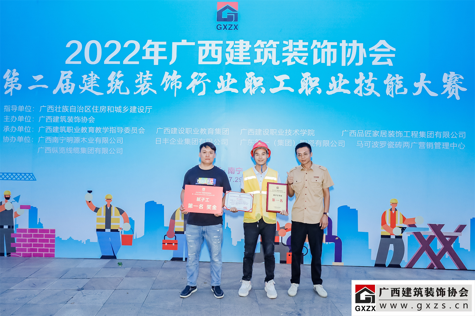 2022年7月29日,2022年廣西建筑裝飾協(xié)會“第二屆建筑裝飾行業(yè)職工職業(yè)技能大賽”,在廣西建設(shè)職業(yè)技術(shù)學院落下帷幕,華輝集團榮獲膩子工第一名、團隊第三名、精細木工第三名、管道工和瓷磚貼面第五名的好成績。