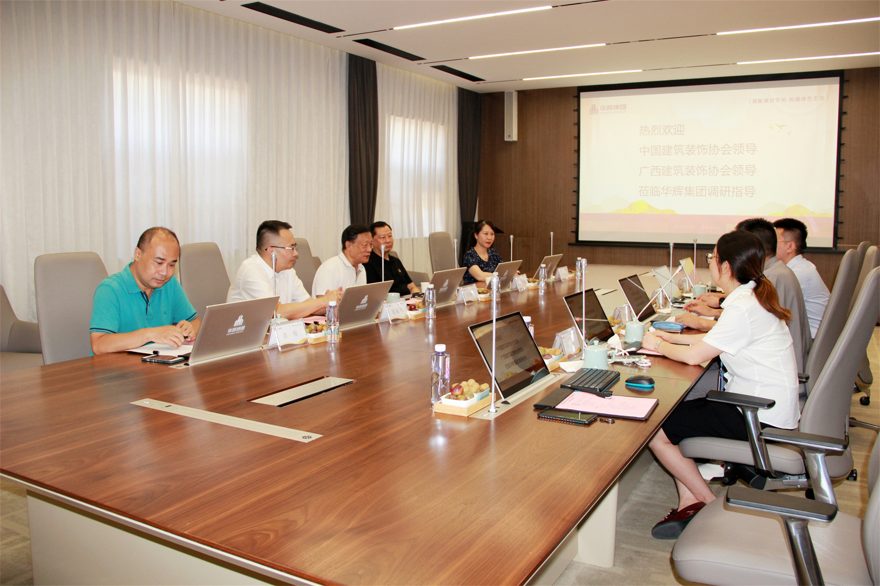 2022年8月23日,中國建筑裝飾協(xié)會會長劉曉一,第九屆理事會會長候選人、住房和城鄉(xiāng)建設(shè)部原機關(guān)服務(wù)中心主任王中奇,廣西建筑裝飾協(xié)會會長龐耀國,蒞臨華輝集團調(diào)研指導(dǎo)。集團董事長楊景忠、副總裁楊彬熱情接待并陪同調(diào)研。
