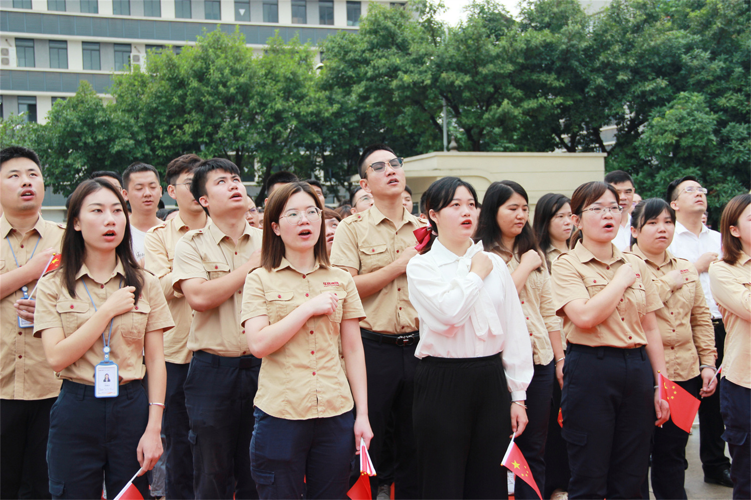 上午8點,華輝人匯聚集團總部操場整齊列隊,在蓬勃的朝陽下,鮮艷的五星紅旗在激昂雄壯的國歌聲中冉冉升起、迎風(fēng)飄揚,全體華輝人肅立注目,齊唱國歌,向偉大的祖國致以最崇高的敬意和深深祝福。