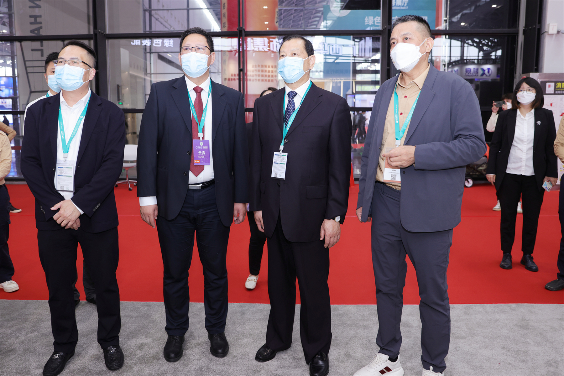 2022年11月26日,2022中國—東盟建筑業(yè)暨高品質(zhì)人居環(huán)境博覽會第二天,自治區(qū)住房城鄉(xiāng)建設(shè)廳副廳長潘國雄蒞臨華輝展廳指導。