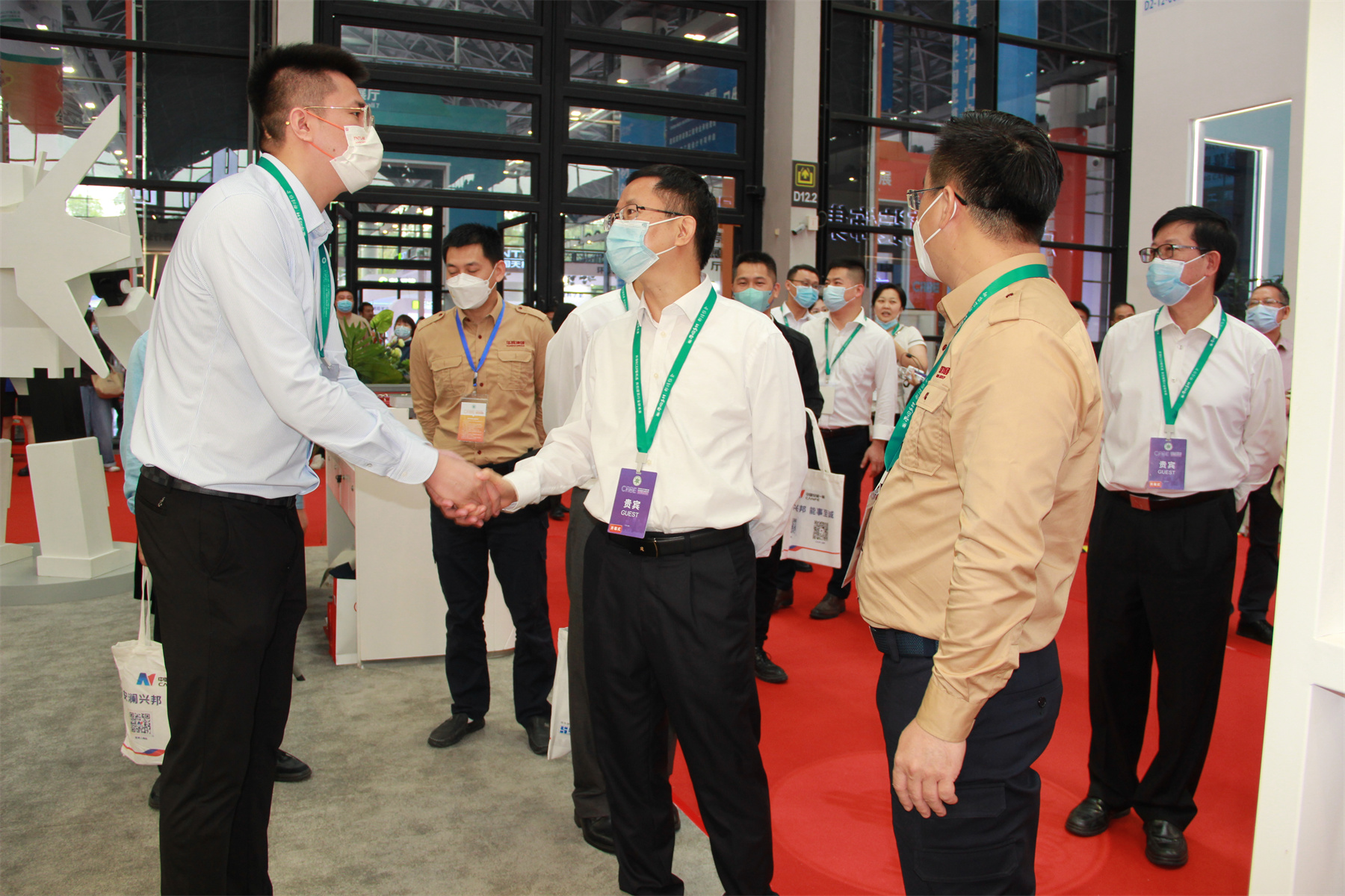2022年11月27日,建博會第三日,自治區(qū)住房城鄉(xiāng)建設(shè)廳廳長唐標文蒞臨華輝展廳指導,深入了解華輝綠色裝配產(chǎn)品體系,對華輝12小時完成展位裝配的創(chuàng)新做法給予了高度肯定。華輝集團楊景忠董事長熱情接待,并對華輝綠色裝配產(chǎn)品的現(xiàn)狀及發(fā)展戰(zhàn)略進行匯報。