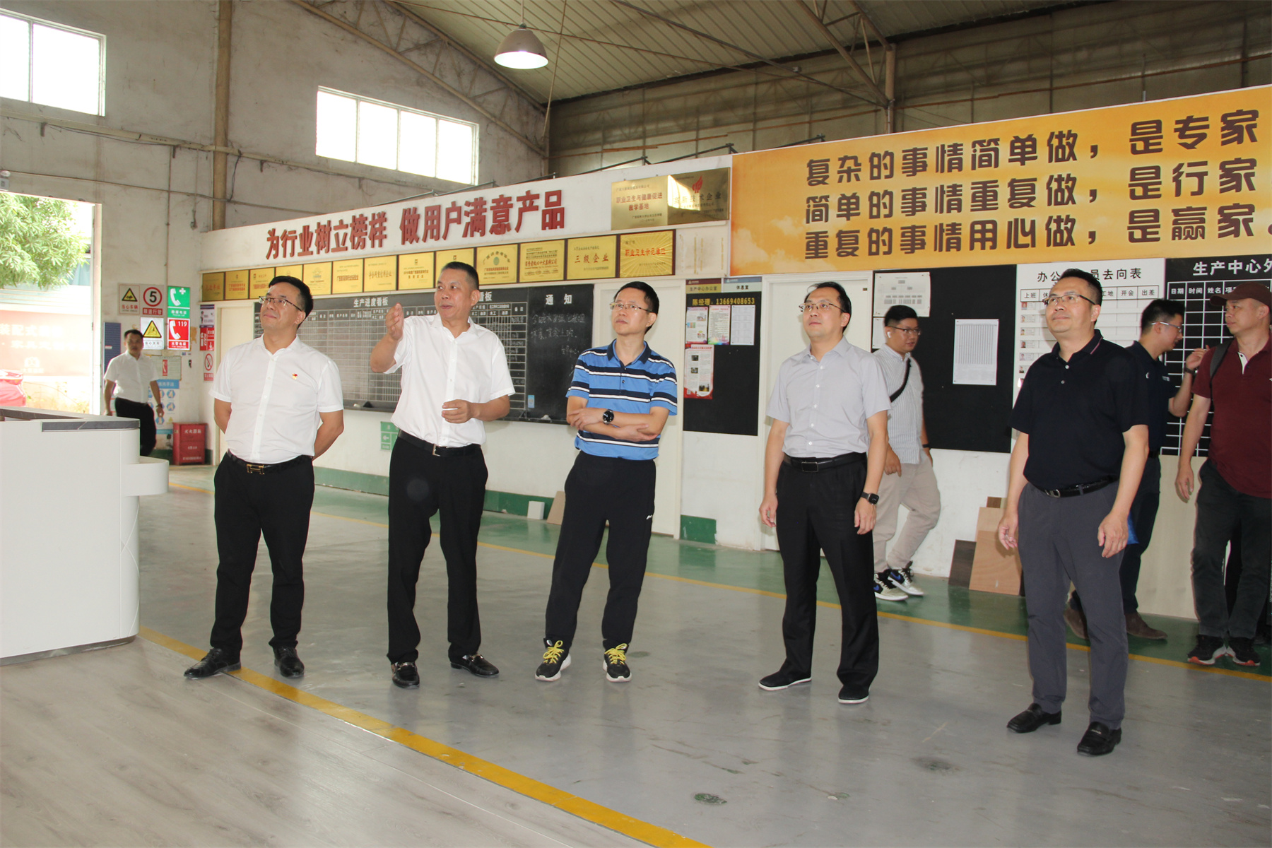 ▲潘國雄(左三)深入調(diào)研華輝生產(chǎn)車間