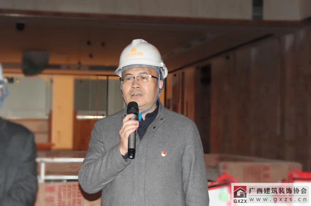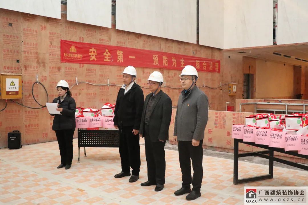 龐耀國在發(fā)言中提到,廣西建設(shè)工會作為自治區(qū)住房城鄉(xiāng)建設(shè)廳直屬單位,主要負責建設(shè)行業(yè)工會的宏觀指導(dǎo)工作,今天也是廣西建設(shè)工會首次來到裝飾工程項目現(xiàn)場開展慰問活動。多年來,廣西建設(shè)工會各級領(lǐng)導(dǎo)一直關(guān)注建筑裝飾行業(yè)的發(fā)展,尤其在裝飾行業(yè)職工職業(yè)技能培訓(xùn)、技能競賽指導(dǎo)等方面給予了非常多的支持,對提高裝飾行業(yè)職業(yè)技能水平,強化人才培養(yǎng)等方面工作幫助很大。新年伊始,希望廣西建筑裝飾行業(yè)能夠繼續(xù)在廣西建設(shè)工會的指導(dǎo)和幫助下取得更大的進步,同時也不斷提高行業(yè)素質(zhì)和專業(yè)水準,培養(yǎng)和造就一支高素質(zhì)的人才隊伍,建造更多裝飾精品工程。