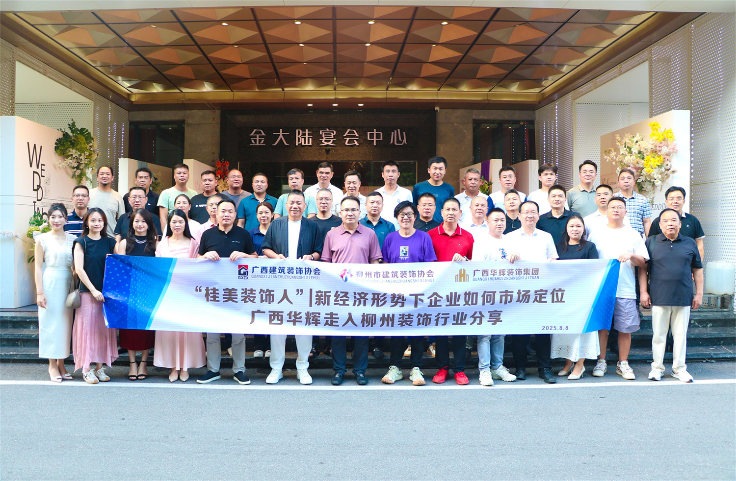 2025年8月8日,廣西建筑裝飾協(xié)會(huì)在柳州舉辦“桂美裝飾人”系列公益活動(dòng)——新經(jīng)濟(jì)形勢(shì)下企業(yè)如何市場(chǎng)定位暨廣西華輝走入柳州裝飾行業(yè)分享專(zhuān)題會(huì)。本次活動(dòng)由廣西建筑裝飾協(xié)會(huì)主辦,柳州建筑裝飾協(xié)會(huì)、廣西華輝裝飾集團(tuán)有限公司承辦,來(lái)自柳州市建筑裝飾協(xié)會(huì)會(huì)員企業(yè)約50位負(fù)責(zé)人參加本次會(huì)議。